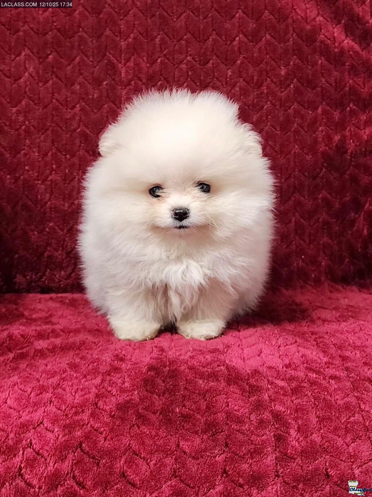 We have a female Pomeranian puppy 6 weeks old, ready to go now. Her mature weight will be around 6-7 pounds. She comes with puppy pack, sample of food, shots, wormings, health guarantee, and registration(ckc).She is $675. Location: Covington,LA. For further information please call or text 985-373-0989. | |||